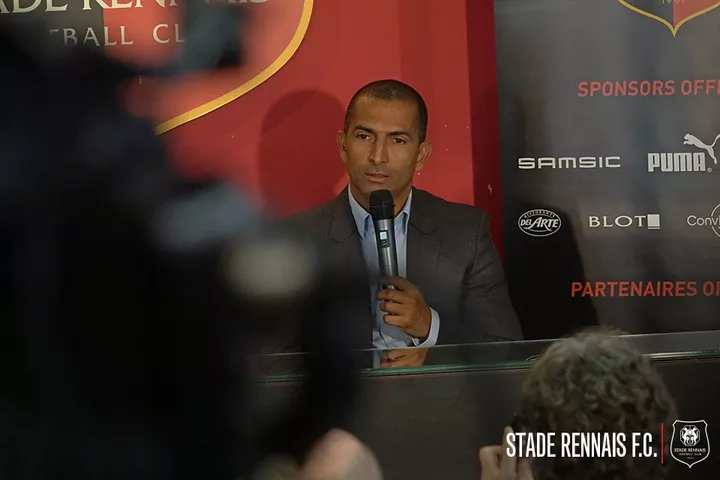 Sabri Lamouchi face aux journalistes : « Inutile de vous dire à quel point je suis heureux de me présenter face à vous. Aujourd’hui, c’est un petit peu particulier parce que c’est mon anniversaire, mais c’est anecdotique. Recevoir un cadeau aussi beau dans un club aussi prestigieux. Je voudrais remercier les propriétaires, Olivier, les membres du club et les joueurs pour leur accueil. J’ai eu ce contact avec Olivier il y a plusieurs semaines. Nos échanges ont été nombreux et très intéressants. J’ai tout de suite été séduit par son discours et l’ambition qu’il a pour le Stade Rennais. J’ai toujours eu de l’estime pour le club. Quand on passe par le Roazhon Park, on sent que c’est un vrai stade de football, avec un vrai public et une vraie passion. Je suis très heureux d’être le nouvel entraîneur du Stade Rennais F.C. Il y a de belles choses à écrire. Évidemment, tout ne sera pas facile tout de suite mais je suis très enthousiaste et déterminé. »