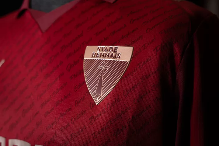 Pour la première fois dans son histoire moderne, le club fait le choix de reprendre le blason historique créé en 1901, lors de la fondation du Stade Rennais F.C. Ce blason originel confère au maillot une dimension symbolique forte : celle d’un héritage vivant, porté hier par les pionniers du club et aujourd’hui par une nouvelle génération de joueurs et de supporters.