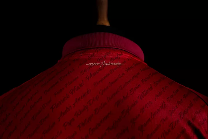 Conçu pour incarner l’histoire et la fierté du club, le maillot se distingue par une teinte bordeaux, symbole d’authenticité, d’héritage et renforce le caractère intemporel de cette pièce anniversaire. Sur cette base bordeaux se dévoilent, comme tracés à la main, les noms de figures emblématiques du club, intégrés ton sur ton.
