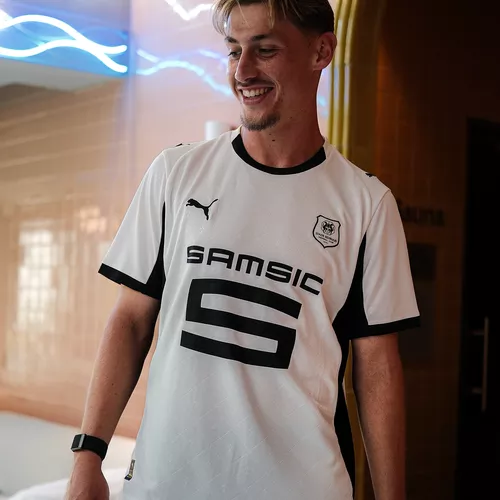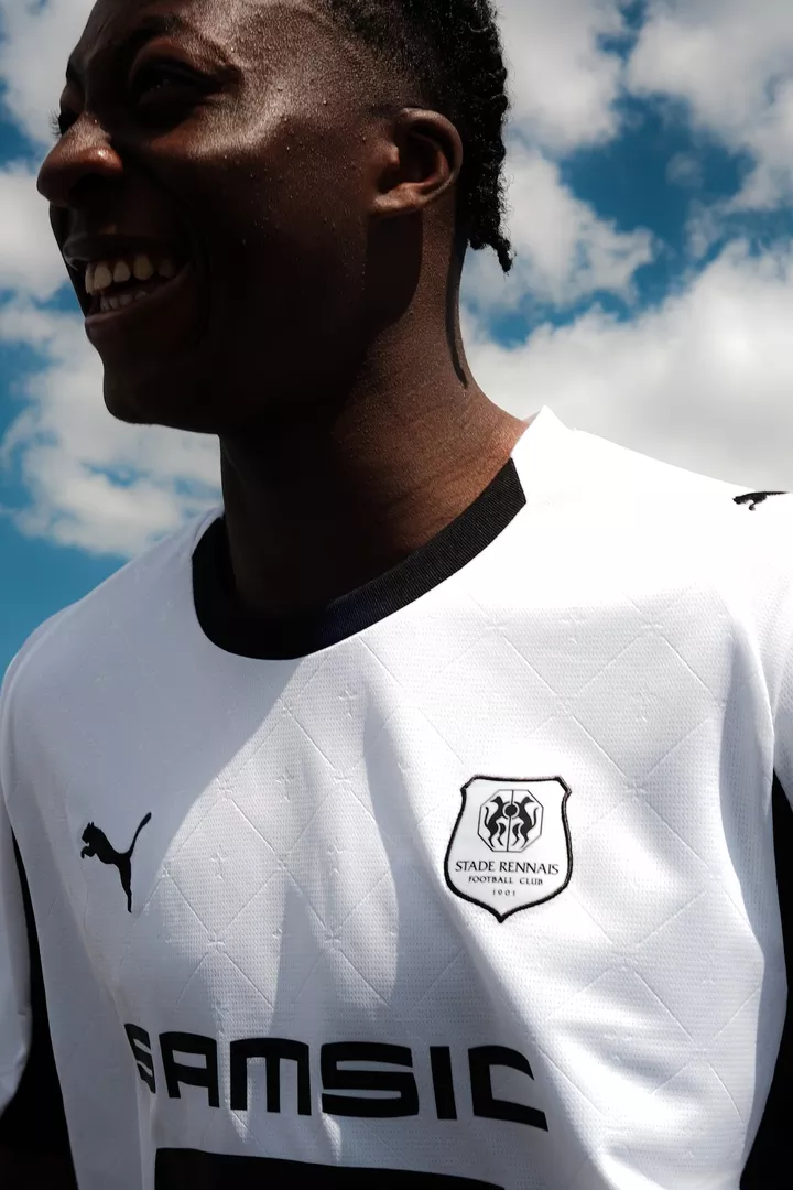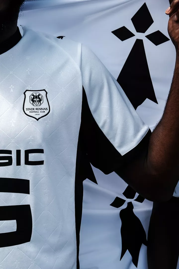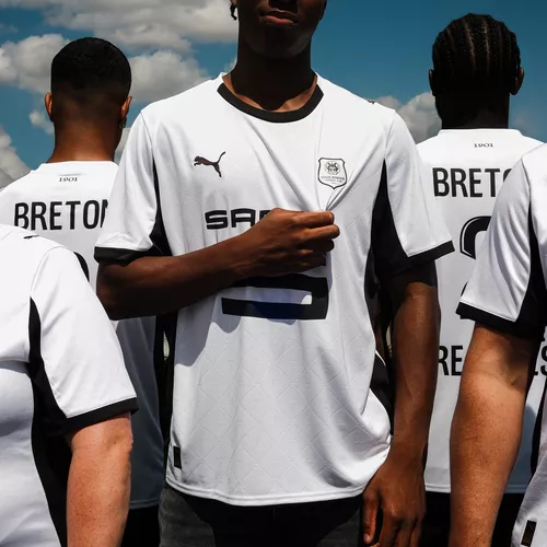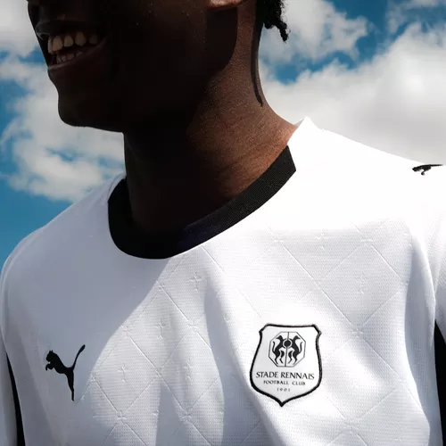 Dans la continuité de la tradition, le blanc immaculé choisi pour cette tunique apporte pureté, fraîcheur et modernité, tout en valorisant à travers de la texture l’hermine bretonne, symbole fort de la région et du club. Les motifs graphiques, rendent hommage à cette double appartenance que les Rennais revendiquent fièrement : supporters du SRFC et enfants de la Bretagne.