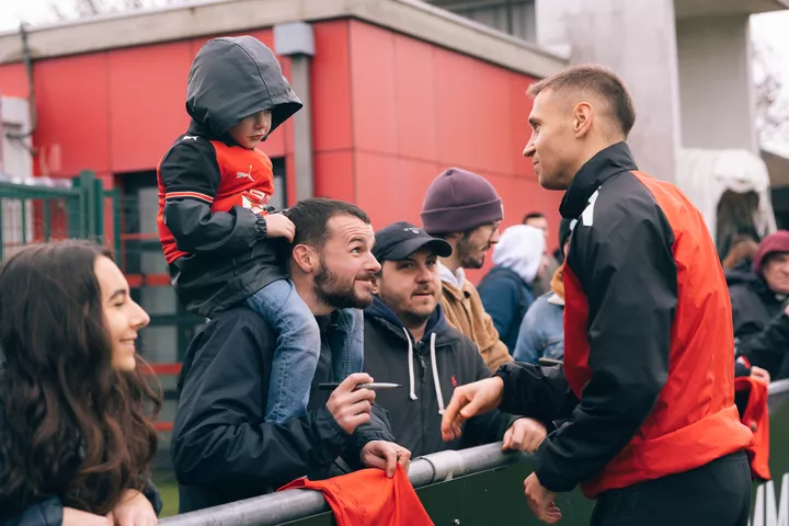 À quelques jours du derby face à Lorient, les supporters Rouge et Noir étaient présents ce mercredi matin à la Piverdière pour soutenir l'effectif professionnel lors de l'entraînement ouvert au public. Une matinée de partage conclue par un moment d'échanges, de photos et de dédicaces.