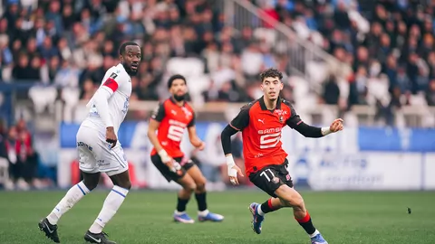 Lassine Sinayoko est hors-jeu pour quelques centimètres seulement. Les Rennais sont avertis.