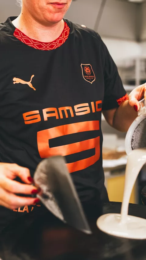 To showcase this creation, PUMA and Stade Rennais F.C. organised an immersive and interactive photo shoot this morning in the heart of the Marché des Lices. To pay tribute to those who make the market every day, local traders wore the jersey, surrounded by the aroma of galettes-saucisses and knowing glances, making the reveal a true moment of life in Rennes.