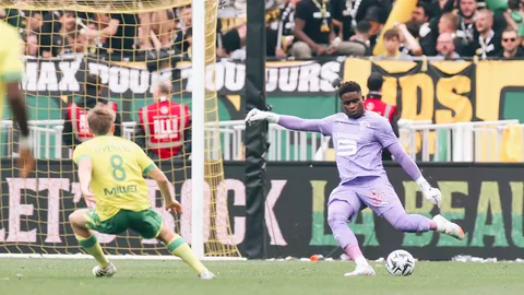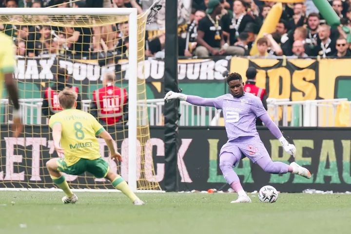 Nantes qui ne parvient pas à se dégager après un corner, Estéban Lepaul arme la reprise du droit. Au second poteau, Anthony Rouault se jette mais n’arrive pas à reprendre.