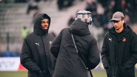 Valentin Rongier centre dans la boîte, et c’est Jérémy Jacquet qui prend le dessus pour placer une tête stoppée par le portier adverse. À la retombée, Breel Embolo pousse au fond des filets mais il est signalé hors-jeu.