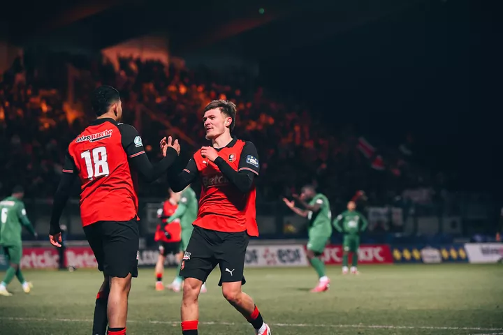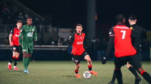 Face à une valeureuse formation de Chantilly, les Rennais ont profité de l’expulsion de Sambou Yatabaré à la 68e minute pour rétablir la situation et ainsi se qualifier pour le prochain tour grâce à des buts de Quentin Merlin, Mousa Al-Tamari et Elias Legendre Quiñonez.
