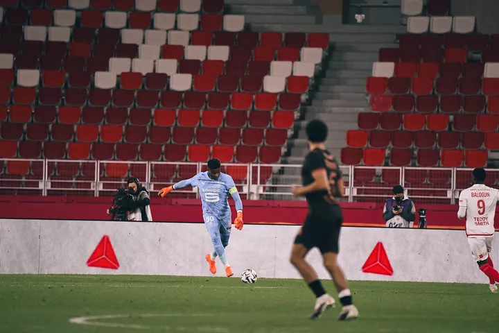 Pressing payant des Rennais qui récupèrent. À la fin de l’action, Estéban Lepaul est dans un angle fermé, c’est cadré mais c’était un ballon difficile à reprendre pour mettre de la puissance.