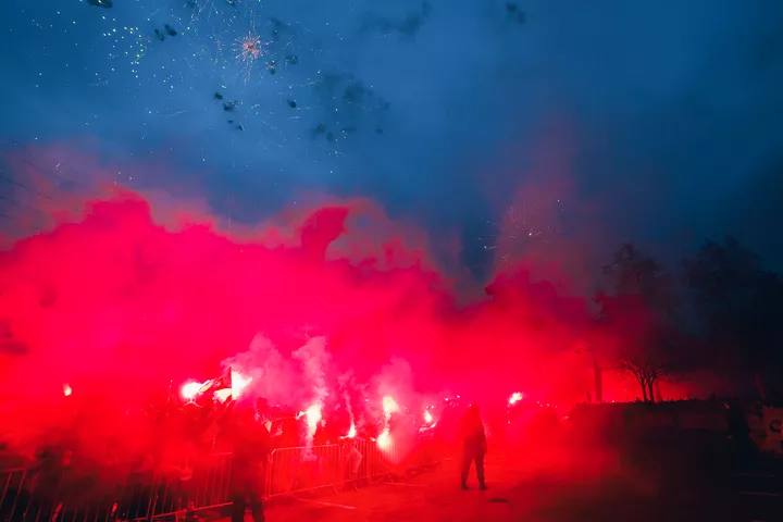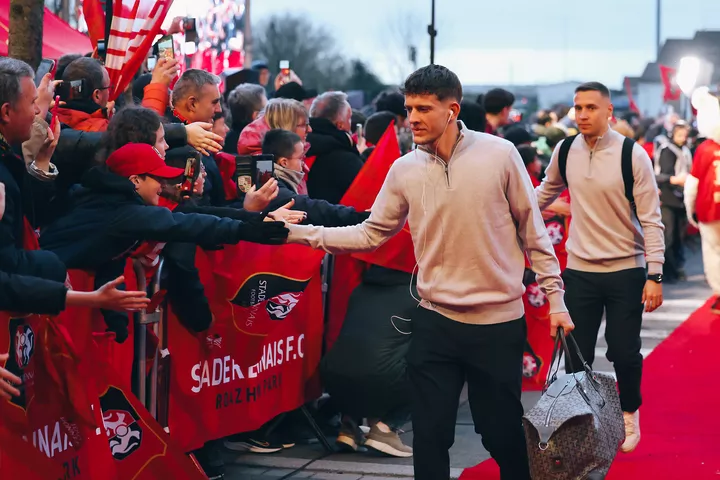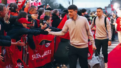 L'accueil réservé à nos joueurs par les supporters. L'ambiance va être bouillante ce soir ! 🔥